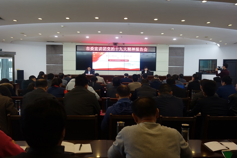 11月17日,市委宣讲团成员、团市委书记周慧到市水利和渔业局宣讲党的十九大精神,市水利和渔业局机关全体人员、局属各基层党组织班子成员、局属单位行政班子成员100余人参加。
