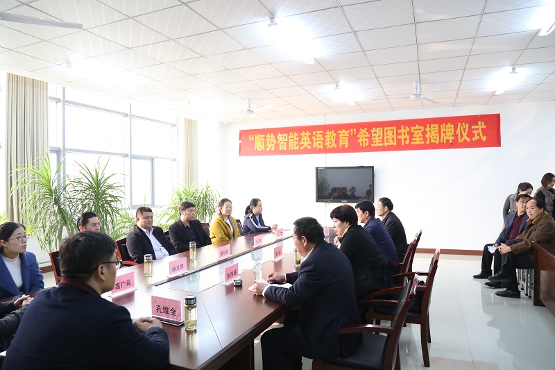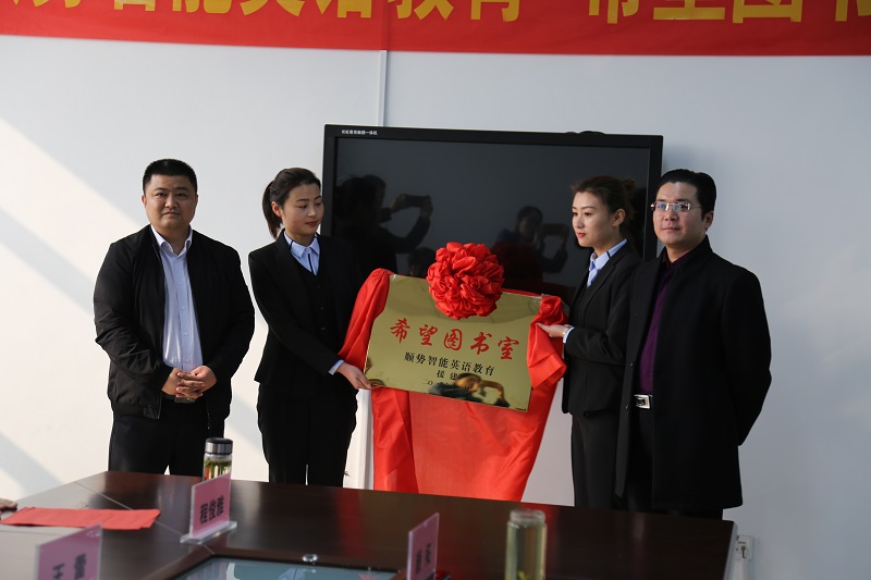 仪式上,学校领导介绍了学校概况、图书室建设及使用情况。爱心企业顺势智能英语教育向西关小学捐赠了价值1万元的图书400册,省青基会董部长、顺势智能英语教育杨总为希望图书室揭牌。