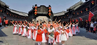 活动内容丰富,青少年们通过合影、嘹亮的歌声以及欢快的舞蹈向祖国告白,古城内的游客循着歌声一同加入此次活动,现场一片欢声笑语。他们把对祖国的热爱融进歌声里,唱给我们的70年,祝福伟大的祖国,永远繁荣昌盛!
