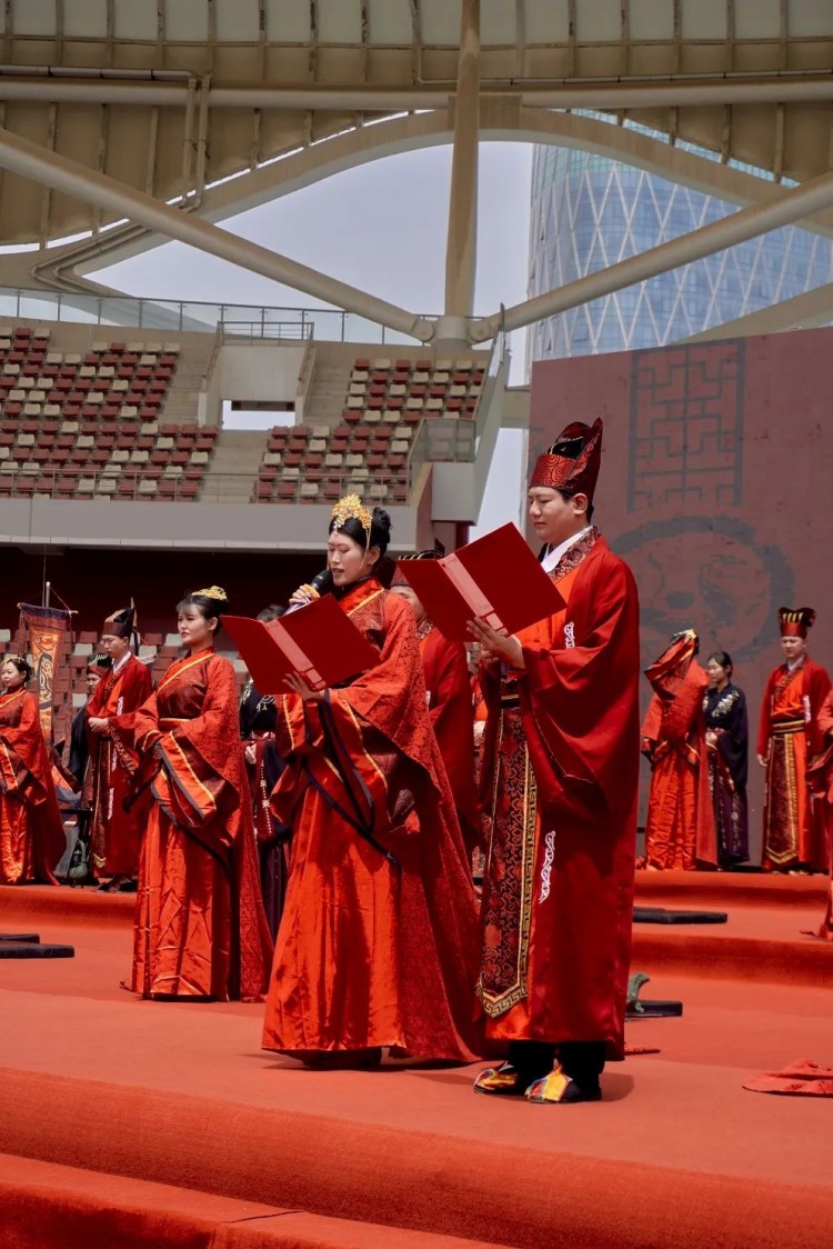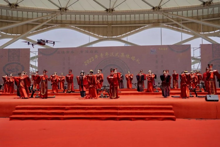 20对新婚青年身着汉服,进行了沃盥礼、同牢礼、合卺礼、执手礼等汉式传统礼仪,度过了一次别样的五四青年节,体验了一次“穿越千年”的爱情之旅,为全市广大青年弘扬传统文化、倡树文明婚俗作出表率。