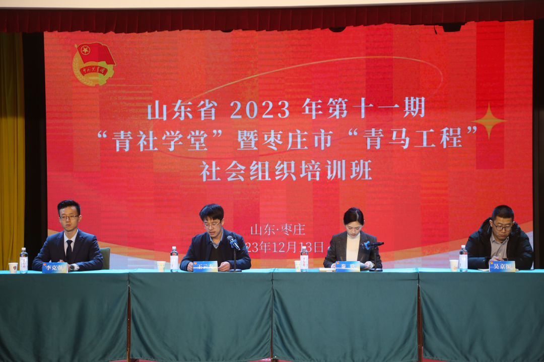 为深入开展团员和青年主题教育,拓展共青团在青年社会组织中的组织覆盖和工作覆盖,12月13日,山东省2023年度第十一期“青社学堂”暨枣庄市“青马工程”社会组织培训班在枣庄市举办。团省委社会联络部负责同志、团市委分管负责同志参加开班式,各区(市)、镇(街)团委社会联络工作负责同志、青年社会组织负责人代表参加培训活动。