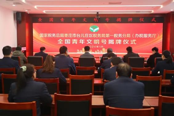为深入学习贯彻习近平新时代中国特色社会主义思想和党的二十大精神,进一步深化青年文明号创建活动、擦亮青年文明号工作品牌,持续引导广大青年和青年集体在服务中心大局中勇当开路先锋、争当事业闯将,1月26日,“全国青年文明号揭牌仪式”在国家税务总局枣庄市台儿庄区税务局第一税务分局(办税服务厅)举行,团市委、市税务局分管负责同志出席揭牌仪式,台儿庄团区委、台儿庄区税务局全体人员50余人参加活动。