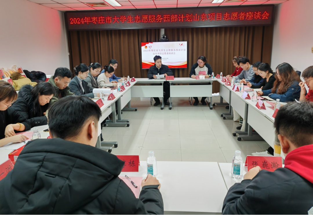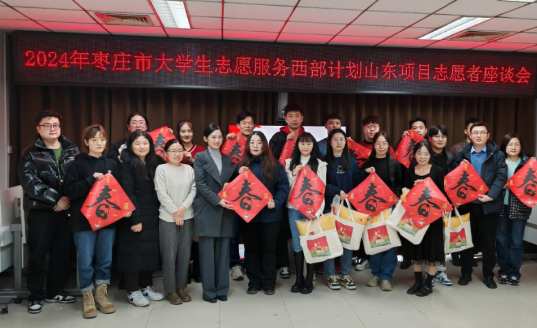 在春节即将到来之际,1月31日,团市委举办2024年西部计划山东项目志愿者春节慰问暨座谈交流会。团市委分管负责同志,各区(市)团委、枣庄高新区团工委相关负责同志及全体在岗西部计划山东项目志愿者参加活动。