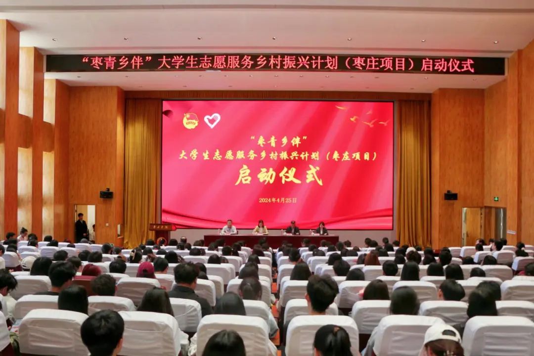 为深入贯彻落实党的二十大精神,围绕全面推进乡村振兴的战略部署,进一步引导和鼓励高校毕业生到枣庄、到基层工作,4月25日上午,山东省大学生志愿服务乡村振兴计划枣庄项目启动仪式在枣庄学院举行。团省委分管负责同志,枣庄学院党委委员、副校长丰雷,团市委主要负责同志,市直相关部门及区(市)团委、枣庄高新区团工委负责同志,枣庄学院师生代表参加活动。