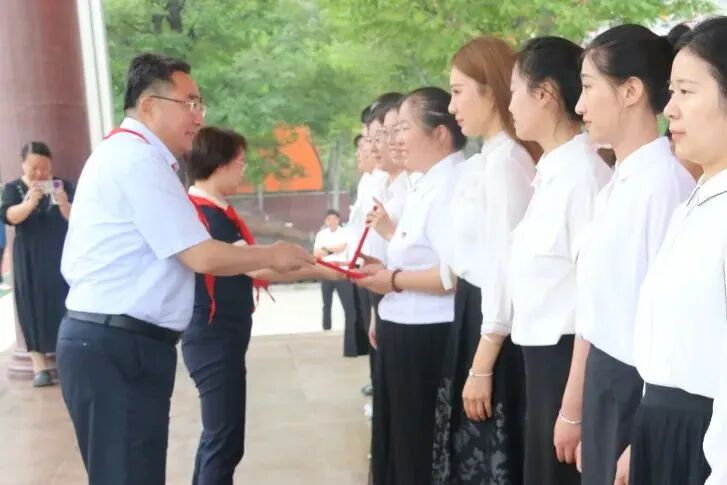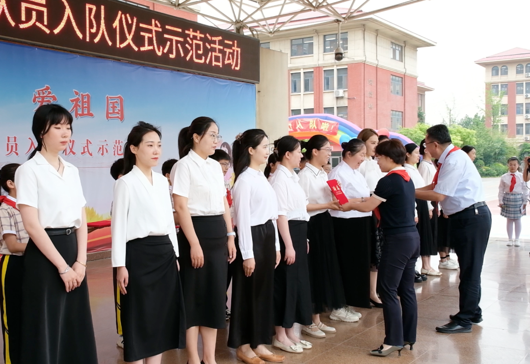 团市委主要负责同志,市中区委副书记邢军为新建中队辅导员颁发聘书。