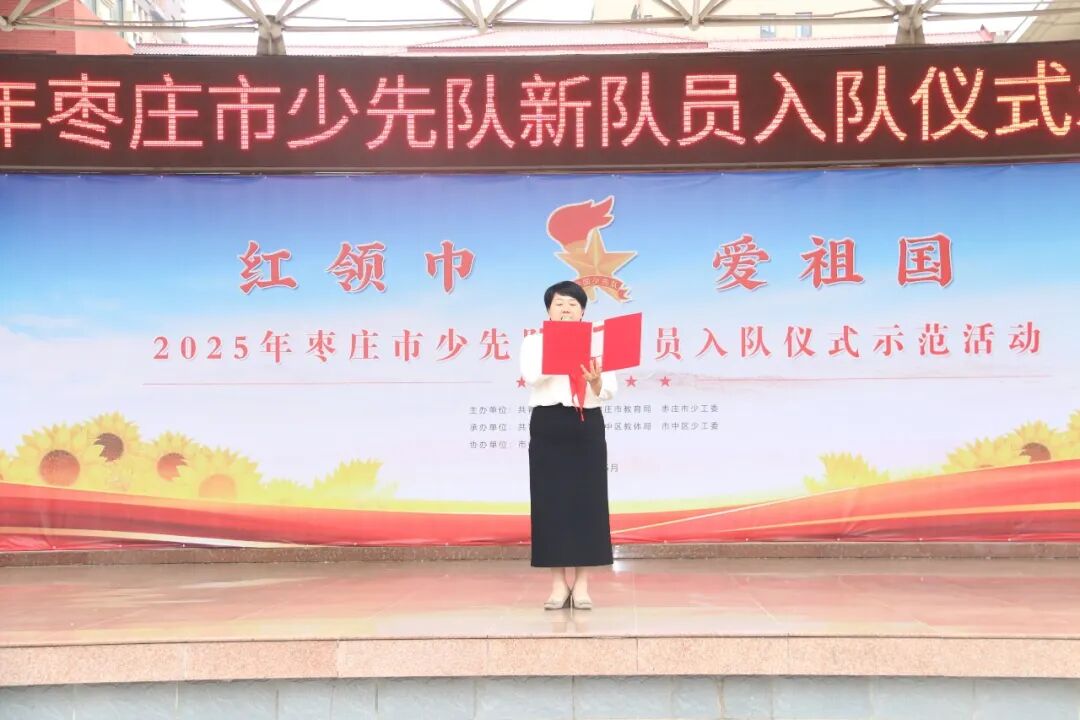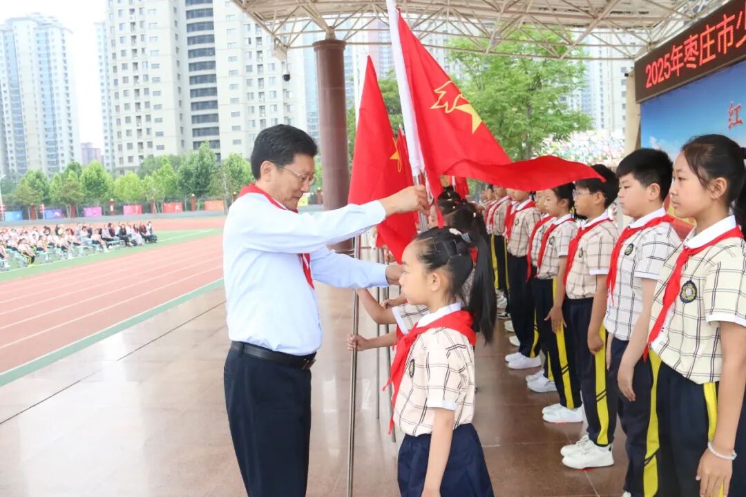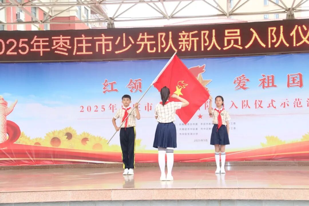 庄严隆重的入队仪式,充分展现了新时代少先队员蓬勃向上的精神风貌,进一步增强了少先队员的光荣感和组织归属感。枣庄市少先队将继续聚焦主责主业,强化政治引领,引导少先队员在星星火炬的指引下,认真学习、不断进步,勇于探索、敢于实践,为实现中华民族伟大复兴的中国梦贡献自己的力量!
