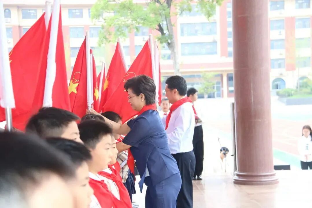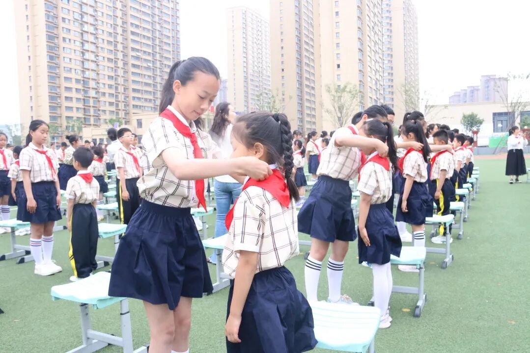 为新建中队辅导员佩戴红领巾