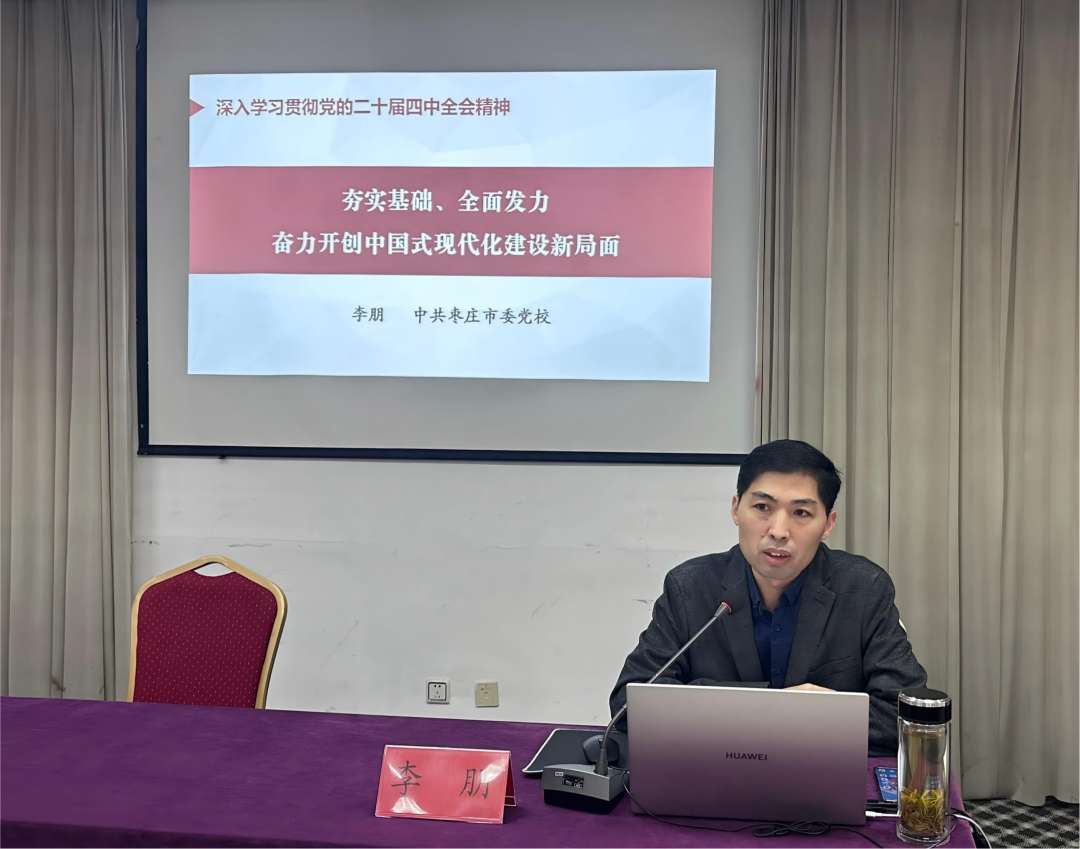 枣庄市青年讲师团成员、枣庄市委党校党史党建教研室副主任李朋围绕学习贯彻党的二十届四中全会精神作专题报告,从“十四五”时期我国发展取得的重大成就,“十五五”时期经济社会发展的指导方针、主要目标、战略任务和重大举措,以及坚持和加强党的全面领导等方面,对全会精神进行了深入解读,进一步激发我市乡村青年在中国式现代化建设中挺膺担当的昂扬斗志。