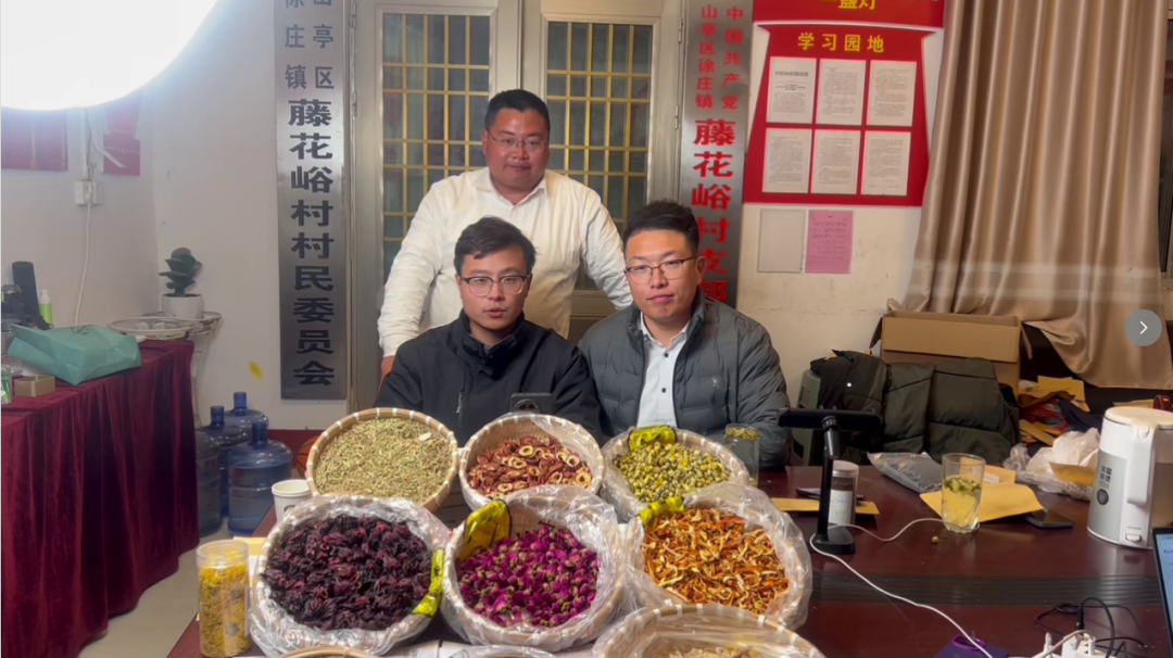 今年,他们开通了短视频账号,为当地农产品带货。在他们的直播间里,卖过花椒、樱桃、大枣、小米、地瓜,最近出现的是当地的花茶。从刚开始摸索经验到由亏转盈用了三四个月的时间,“三人组”现在已经帮助了100多户村民增收,还创造了就业岗位。直播的收入,一部分归入村集体,一部分用于村里的公益事业。