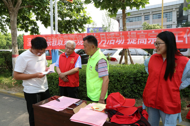 6月11日,东沙河镇青年志愿者积极参与2020年宗教政策法规学习月活动。镇新时代文明志愿者、青年志愿者、巾帼志愿者、科普志愿者参与了活动。该镇社会事务管理办公室统一战线岗、村务民风岗,宣传文化旅游办公室精神文明岗、文旅科体岗、镇志编撰岗,党政办公室机要工作岗,团委、妇联,各党总支等联合组织活动。通过政策法规上墙、悬挂宣传横幅、摆放宣传台、设置宣传展板、发放宣传手册和现场提供政策法规咨询等方式,深入宣传宗教政策法规。