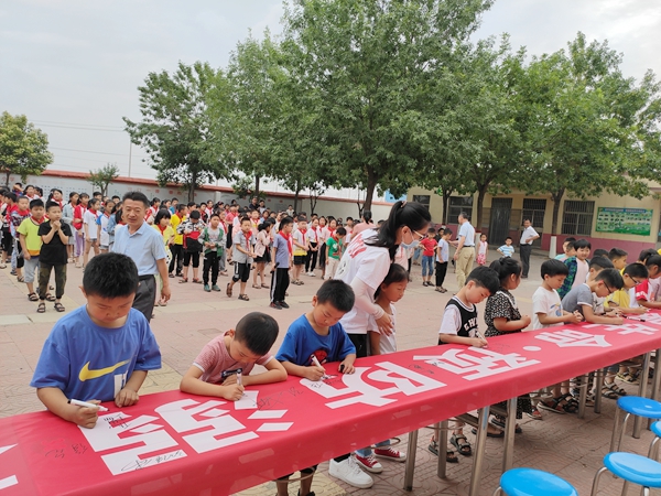 近日,姜屯镇在党村小学开展“珍爱生命·预防溺水”宣誓、签字活动。活动中,对全校学生进行了防溺水“六不准”安全教育、组织了全体学生集体宣誓。全体教师和学生分别在“珍爱生命·预防溺水”的条幅上签下自己的名字。通过开展宣誓、签字活动,学生能够自觉承诺做防溺水代言人,时刻铭记防溺水安全的重要性,严格遵守防溺水安全教育“六不准”,时刻铭记用自己的行动来履行自己的誓言。
