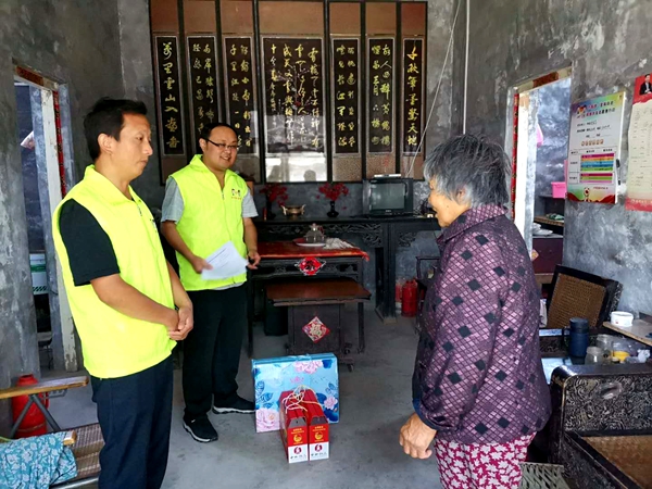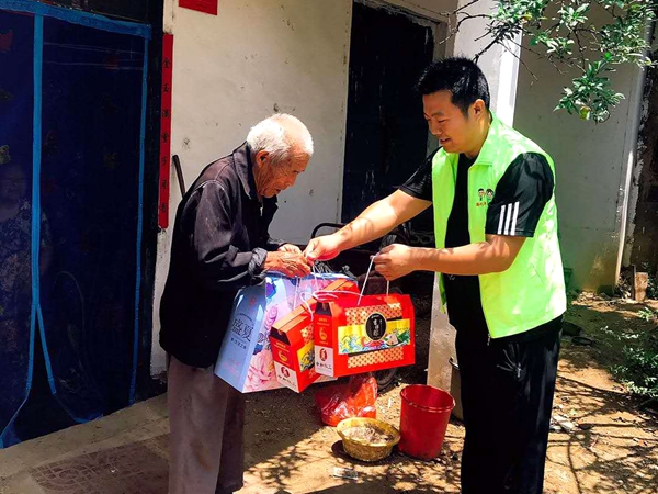 青年志愿者们先后走访慰问了7户建档立卡贫困户老人,为他们送去了粽子、夏凉被等慰问品和节日的祝福,亲切与贫困户拉家常,了解了他们身体状况和生活情况,开展了“五个一”的志愿服务,为打赢脱贫攻坚战、营造尊老敬老良好社会氛围贡献青春力量。