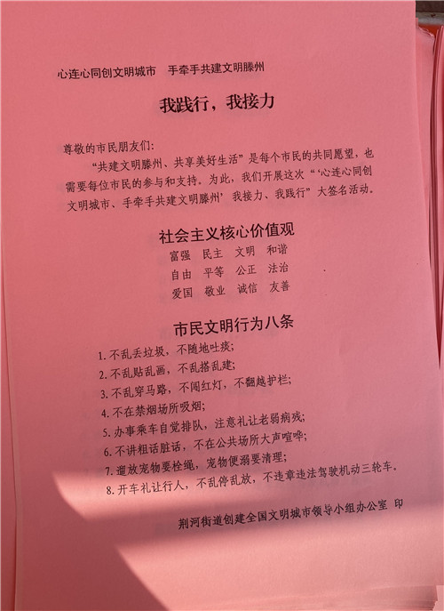 今年是滕州市创建全国文明城市关键之年,6月28日上午荆河街道团工委率领青年志愿者深入到荆西社区开展创城文明宣传“我践行 我接力”活动。