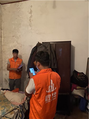7月27日下午,阵雨中荆河街道团工委带领匠昇装饰公司的两名工作人员在社区和村居干部的配合下对荆河辖区刘楼、朱李和东倪三个村居4名儿童房间进行丈量登记工作。丈量结束后,叮嘱每户家长近期要家中留人,确保工程的顺利实施。