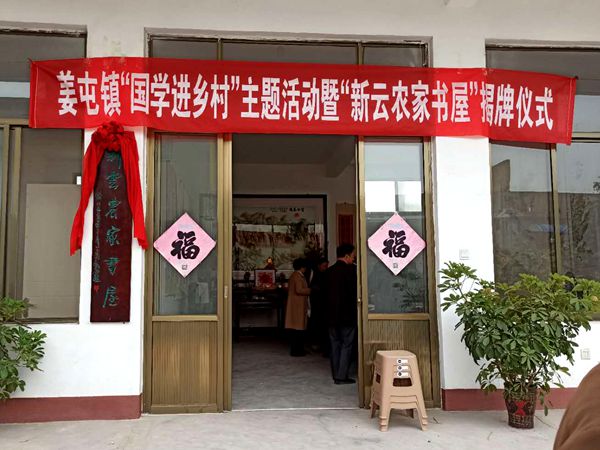 10月6日,姜屯镇文化站、团委联合在洪西村举行“国学进乡村”主题活动暨“新云书屋”揭牌仪式。应邀山东省作家协会会员、山东省戏剧家协会会员朱绪龙,枣庄市国学教育促进会副会长、滕州工作委员会会长任泽美,市诗词协会会长李芳,市著名书画家朱颢然,市诗词协会副会长及部分国学、诗词、联赋、写作、书画爱好者参加。