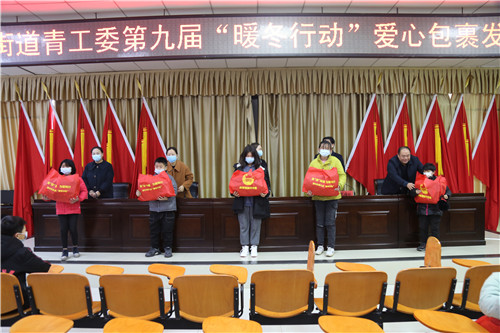 街道党工委副书记孔维刚主持活动。现场为30名贫困学生捐赠了包含口罩、帽子、围巾、手套、保温杯、学习用品、书包在内的暖冬爱心包裹。爱心人士李伟伟还为贫困学生捐赠了小书桌。孔书记希望同学们发奋图强,学习进步。希望青年文明号获奖单位擦亮品牌,投入更多的爱心公益活动。