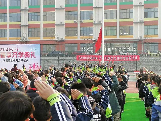 寒雪梅中尽,春风柳上归。在这柳枝吐翠,乍暖还寒的时节,踏着春天的步伐,带着新年的喜悦,怀着对新学期、新征程的期望和憧憬,东沙河街道中心小学全体师生相聚在鲜红的国旗下,隆重举行2021年春季开学典礼暨安全教育月、学雷锋礼仪月启动仪式,本次开学典礼由杜光校长主持。