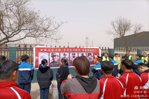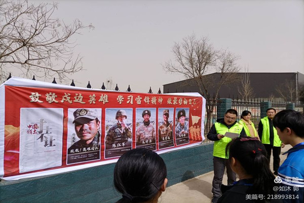 第二阶段由界河镇团委书记张艳丽宣读《致敬戍边英雄,学习雷锋精神,做最好的自己》倡议书。她希望同学们要学习英雄,致敬英雄。戍边英雄用实际行动传承和践行“我的祖国,我用生命捍卫守护”的真正含义。同学们要从自身做起,践行雷锋精神,珍惜大好时光,努力学习,用智慧武装自己的头脑,为以后在祖国繁荣昌盛的道路上贡献自己的力量!