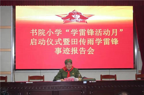 3月5日,书院小学邀请退休老同志、全国学雷锋先进个人田传雨同志作学雷锋事迹报告。田老用质朴的语言和情感告诉同学们:要珍惜时光,刻苦学习,努力用科学文化知识武装自己,做一个诚实、守信、勤奋、创新的新时代好少年。