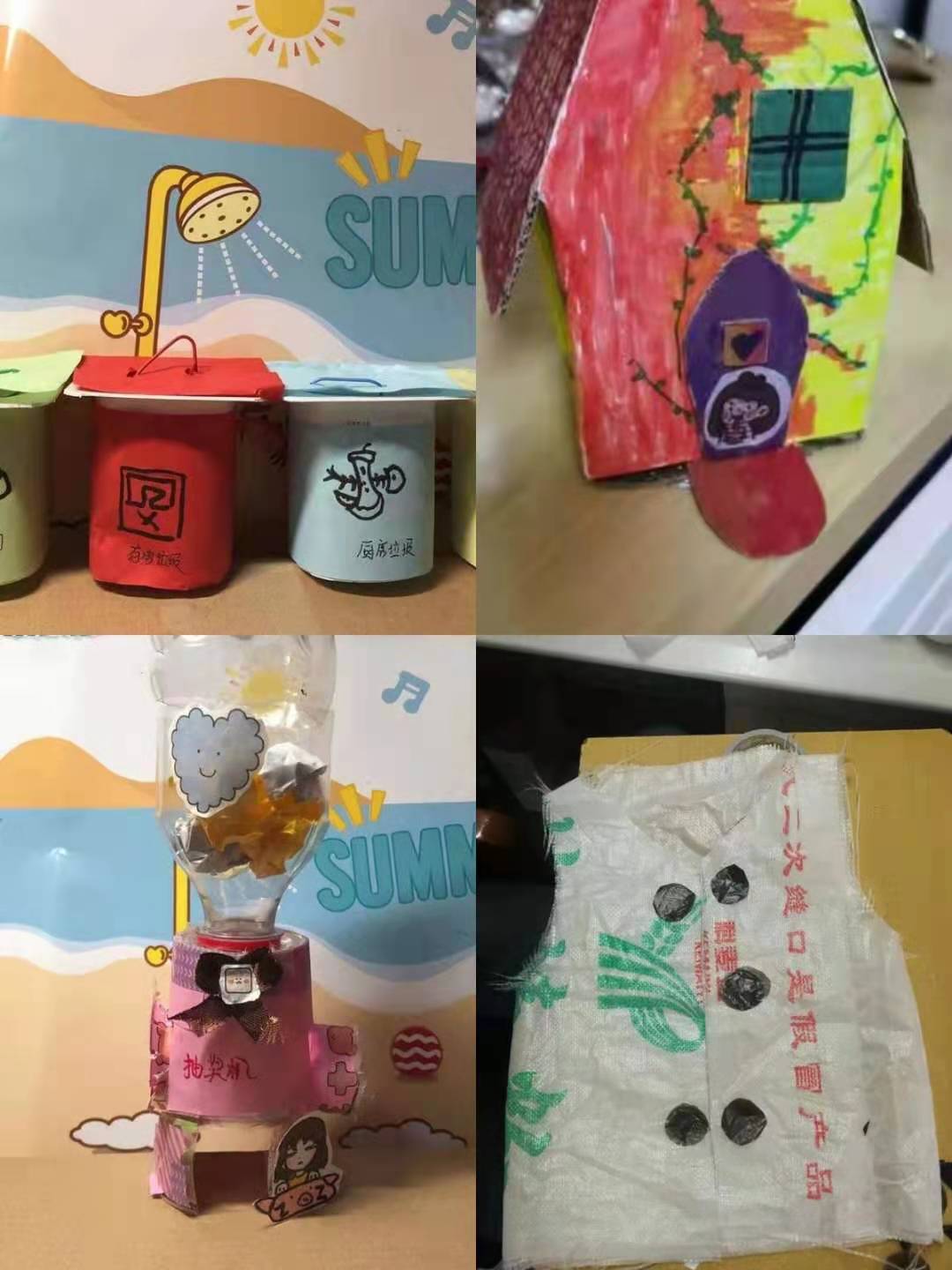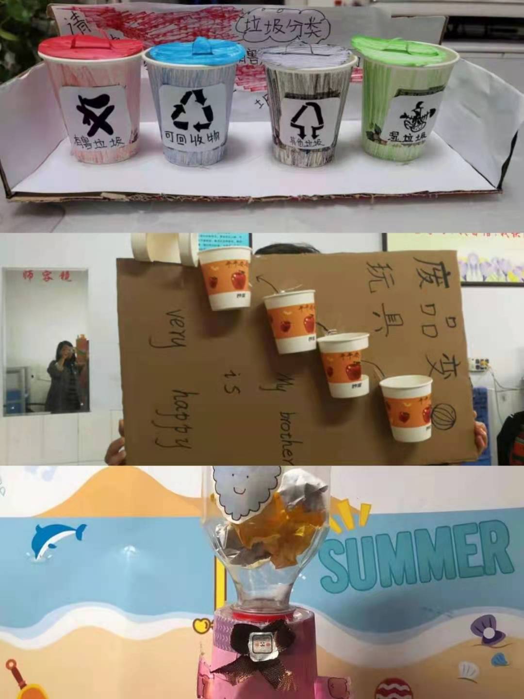生活中看似没用的物品,加入我们的想象,“摇身一变”,成为精美的工艺品。不仅丰富了我们的生活,还为保护环境做出了贡献。我们的队员们,通过想象,积极动手,制作了不少精致的作品呢!你看~~