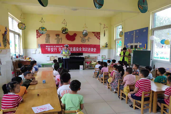 为切实增强小朋友的交通安全意识,教育他们关爱生命、拒绝违章,养成自觉遵守交通法规的良好习惯。6月10日,界河镇团委、妇联、交警队在镇中心幼儿园开展“平安行.你我他”文明交通安全知识宣传进课堂活动。