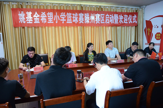 6月15日,“姚基金”希望小学篮球赛滕州赛区启动暨欢迎仪式在大坞镇联区举行。曲阜师范大学体育科学学院副?教授许凤英,滕州市教体局体卫科科长孔德福,滕州市大坞镇党委委员孙作用,共青团滕州市委领导,滕州市大坞镇联合学区刘真标主任,滕州市大坞镇团委书记黄道丽书记,大坞联合学区指导员秦存洋,“姚基金”希望小学篮球季滕州市项目承接人于洋、贾宗霖出席会议。滕州市大坞镇联区班子成员、“姚基金”志愿者指导老师及受助学校校长参加欢迎仪式。