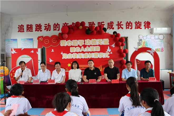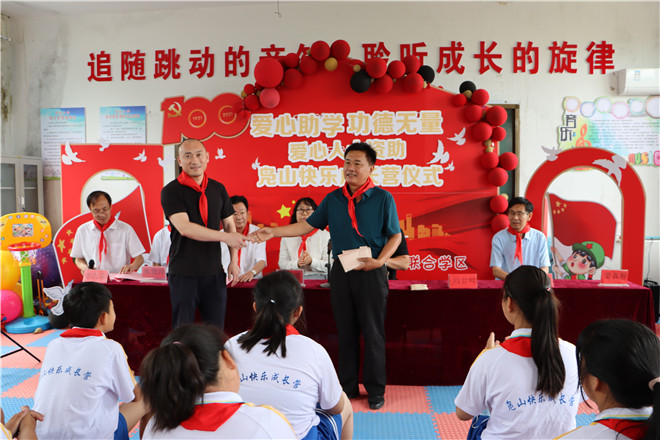 6月16日,大坞镇爱心人士资助“凫山快乐成长营”仪式在“凫山快乐成长营”营地举行。大坞镇党委委员孙作用,民政科、团委、?教委负责人、部分志愿者代表和“凫山快乐成长营”学员参加活动。
