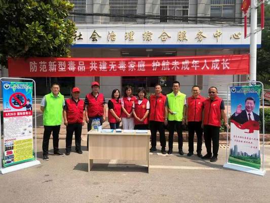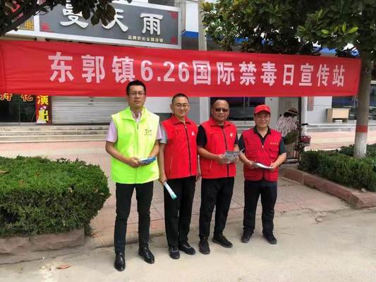 6月26日上午,东郭镇团委组织禁毒社工、青年志愿者、巾帼志愿者开展6.26国际禁毒日宣传活动。