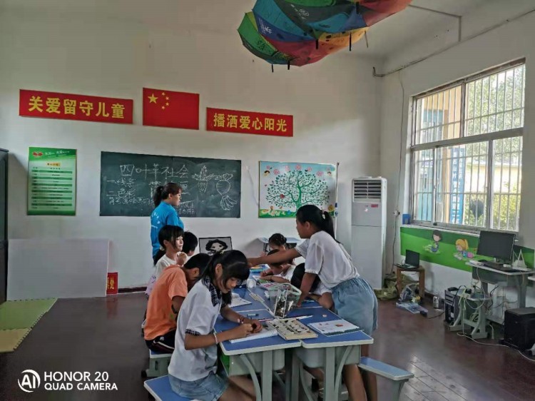 7月20日,山东理工大学暑期社会实践团的大学生正在东郭镇磨石山村为留守儿童教授绘画课。丰富多彩的课程和活动设置开阔了同学们的视野,激发了同学们的兴趣,让他们在学习中收获了成长与快乐。坐落在东郭镇磨石山村的滕州市第四义读学校于2017年6月1日成立,是日举行了滕州市第四义读学校揭牌仪式。据悉,每年的暑假山东理工大学都回来磨石山实践基地开展志愿活动。(通讯员 唐 猛)