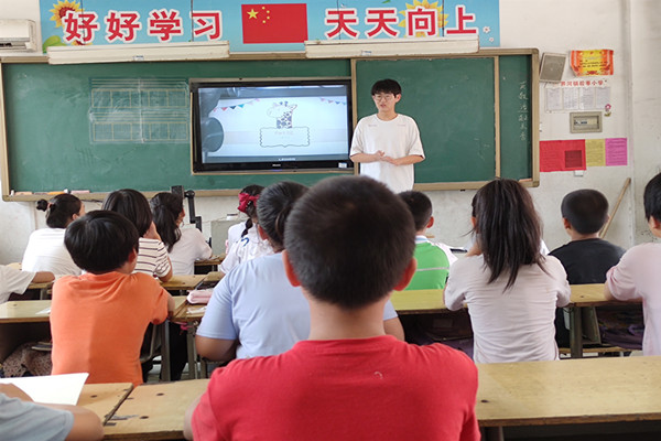 近日,山东科技大学志愿者一行10余人来到界河镇后枣小学开展为期两周的暑期实践支教活动。他们不惧酷暑,克服生活的不便,以极大的热情开展志愿支教服务。面向农村留守儿童,围绕“课业辅导”,精心安排辅导课程,用生动有趣的语言和耐人寻味的事例为孩子们耐心地讲解重点难点问题,帮助孩子们查缺补漏、巩固所学的知识点。同时,志愿者们还精心为孩子们准备了手工绘画和歌唱技巧等丰富多彩的课程,激发了孩子们的课外学习兴趣,让孩子们在愉悦的课堂中收获了知识和快乐。