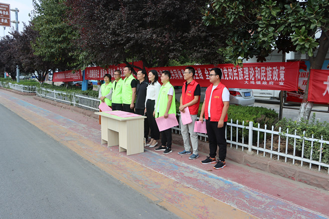 活动现场,志愿者们积极向过往群众发放各类宣传资料,宣传党的民族理论政策、民族宗教法律法规等,引导群众不断增强爱国意识、法治意识、民族意识,携手共谱民族团结进步新篇章。