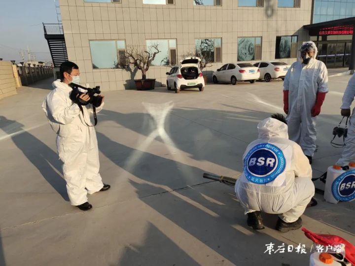 抗疫关头·2021年2月21日,枣庄日报全媒体记者身穿隔离衣到涉疫企业采访记录。
