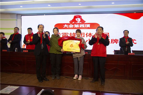 枣庄市学雷锋志愿者联合会副会长、滕州市学雷锋志愿者联合会会长侯志龙,荆河联区党委委员、工会主席徐明洪共同为学雷锋团体会员单位揭牌。