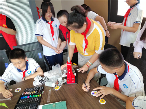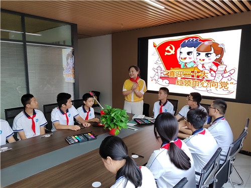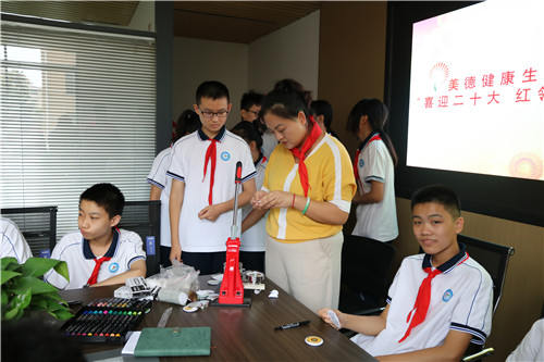 会后,开展了“喜迎二十大 红领巾心向党”主题队日活动。团工委书记苏晓带领少先队代表,动手绘制了图章。少先队员们用充满稚气的涂鸦作品献礼二十大,用自己最真诚的的祝福献给党。