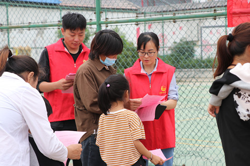 活动现场,青年志愿者们将《垃圾分类相关知识》、《“小手拉大手 垃圾分类齐步走”倡议书》、《“垃圾分类 青年先行”垃圾分类倡议书》等宣传资料发放到青年、老人和孩子手中,并用浅显易懂的语言向他们传达垃圾分类的定义、垃圾分类的方法、优点和意义,引导村民认识各种颜色的垃圾桶,并学会正确分类投放。