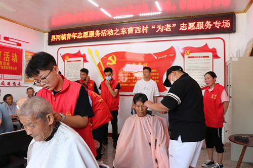 为弘扬中华民族敬老爱老的优良传统美德,7月26日,界河镇团委联合新时代文明实践所,在东曹西村开展为70岁以上老人免费理发志愿服务活动。