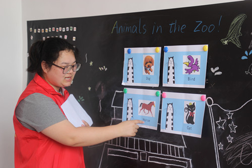 趣味英语课堂上,志愿者们首先向幼儿园孩子们展示了和动物相关的单词图片,随后通过“单词找找找”小游戏以玩促学,带动学习氛围,营造快乐的英语“乐园”,让小朋友们在听、说互动中体验英语学习的乐趣,激发小朋友们英语学习的兴趣。