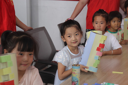 手工课上,孩子们利用简易的材料,在志愿者的指导下,充分发挥想象,制作出自己眼中的“高楼大厦”,课堂中的欢声笑语,实践中的充分展示,学习氛围浓厚而又愉快。公益课堂在孩子们满意的笑容中落下帷幕。