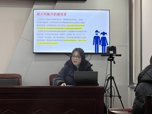 会上,对参会的“乡村好青年”隆重表彰,发放荣誉证书。宋书记作重要讲话,他勉励“乡村好青年”要加强学习,提升思想素质,提高政治站位,“打铁还需自身硬”,在乡村建设的道路上不断历练自己;要解放思想,不但创新,在各行各业发挥示范带动作用,为乡村振兴添砖加瓦;要严于律己,崇德修身,恪守正道,在乡村振兴中引领时代风尚。最后,“返家乡”社会实践大学生开展青春公益课堂,李芮菡针对《促进人才回流,助力乡村振兴》阐释了自己的观点,李昊峰通过《药食同源促健康》为“乡村好青年”送去中医健康知识,青春公益课堂贴近实际,把知识送进“好青年”的心坎里,得到青年的一致赞许。