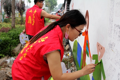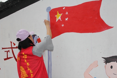 6月10-11日,山亭团区委组织70余名青年志愿者,在山城街道郭庄社区,绘制500余平方米的文化墙绘。墙绘以“社会主义核心价值观、倡树文明新风、爱护环境卫生”等多种主题,呼吁广大市民共同携手,共建幸福新山亭。