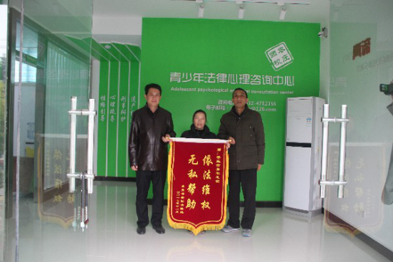 2017年11月17日上午,家住贵州省贵阳市的刘发仙女士给枣庄市青年之家送来一面印有“依法维权 无私帮助”字样的锦旗,感谢青年之家工作人员给予的无私帮助。市团校副书记、副校长吕高文,“4712355”法律援助热线维权教师、教务处主任韩光明热情接待并收下锦旗。