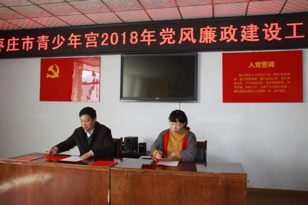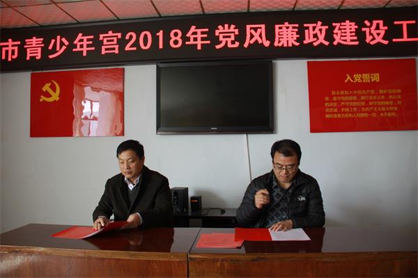 会上,秦利副主任带领学习《关于认真传达贯彻落实2018年度党风廉政建设会议精神》。孙守军主任传达了3月1日团市委召开党风廉政建设会议精神。青少年宫主任与各副主任、分管领导与各部室负责人分别签署了2018年党风廉政建设责任书。