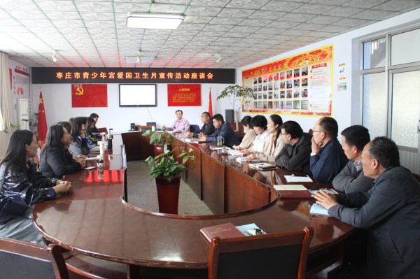 综治办印制张贴了以《人人参与环境保护 个个争当绿色天使》、《提高全民健康卫生 促进社会文明进步》为主题的宣传海报。青少年宫组织全体教职工开展了院内大扫除,观看了宣传片,并针对青少年宫人流量大,厕所使用频次高的特点,专门召开爱国卫生月宣传月活动座谈会,集中讨论了如何改进完善厕所设施设备,增加清扫冲洗次数,确保所有卫生间干净整洁,空气流通,无异味,综治办定点定人督促检查。