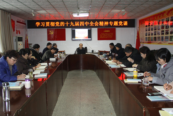 为加深对十九届四中全会精神的领悟,党支部向全体党员和教职工传达了《共青团枣庄市委关于学习宣传党的十九届四中全会精神的通知》《十九届四次会议公报》《十九届四中全会起草说明》《党的十九届四中全会决定全文》等文件,宫党支部书记种燕同志围绕全面把握全会的总体情况、充分认识全会的重大意义、深刻理解全会作出的经验概括、认真领会全会明确的总体要求和总体目标、准确把握全会安排的重点任务、加强对学习宣传贯彻全会精神的组织领导等方面进行了系统解读,对学习宣传贯彻全会精神、坚定制度自信谈了认识体会,帮助教职工深化了对全会精神的理解。