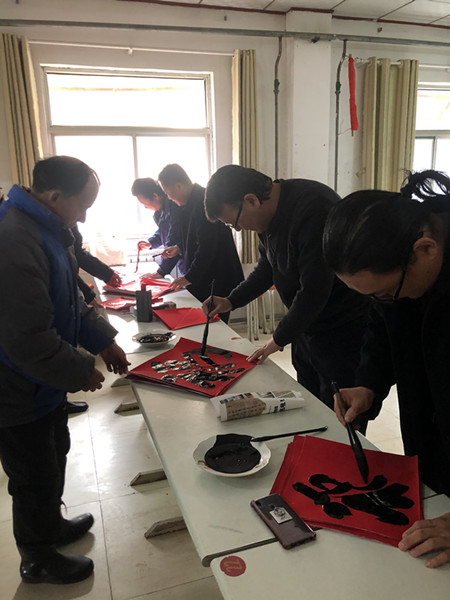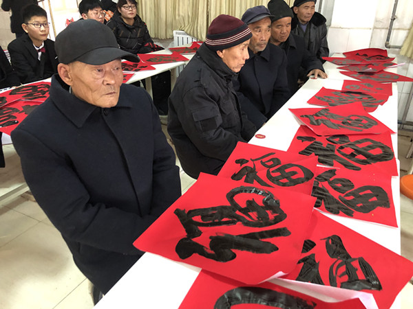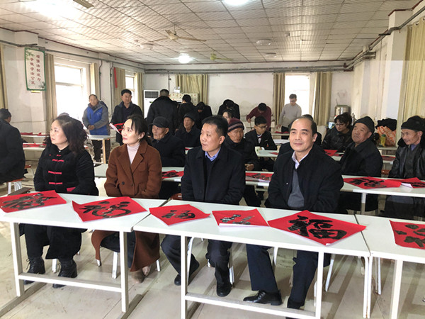 在福利院里,青年书法家们现场挥毫泼墨,为福利院老人写福字、贴春联,青少年宫火炬艺术团的师生们载歌载舞,为福利院老人们带来了精心编排的文艺节目和祝福,福利院到处充满喜庆和热烈的气氛,不时传来掌声和赞叹声。