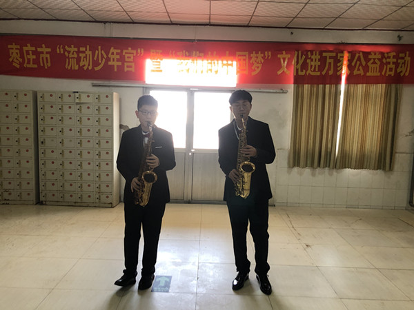 从枣庄市青少年宫火炬艺术团走出去的学员--孟源同学现在已经是上海音乐学院的大一学生,寒假刚刚开始,听说青少年宫组织举办老少同乐迎新春走进福利院慰问演出,他自愿报名参加活动,用自己的实际行动回报青少年宫多年来的培养;颜慈小朋友也是多次荣获国家、省市声乐大奖的“明星小歌手”,她为福利院的爷爷奶奶带来了《微山湖》、豫剧《朝阳沟》选段等好听的歌曲;舞蹈、萨克斯专业的小队员用优美的舞姿和娴熟的器乐表演,也赢得了福利院老人们的一致赞叹,随着青少年宫音乐教师顾连军《夕阳红》的演唱,老人们也情不自禁的击掌附和,在他的带领下全体演员齐唱《我和我的祖国》,将慰问活动推向了高潮。