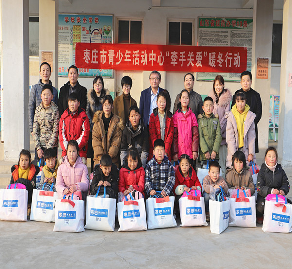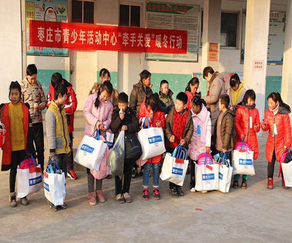 1月20日下午,市青少年活动中心在市中区齐村镇韩庄小学开展“牵手关爱-暖冬行”暖冬包裹发放活动。给20名留守儿童送来了羽绒服、书包、水彩笔、铅笔盒、保温杯等生活和学习用品,让山区的留守儿童度过一个温暖、快乐的新年。