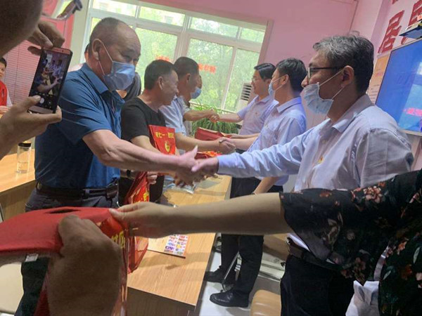 随后,团市委副书记张宗银和市青少年宫党支部书记种燕同志在社区同志带领下,一起走进老党员李振杰家中,送去党的节日祝福和党员学习节日礼包,关心问候老党员的生活身体状况,安排社区党组织负责同志要及时了解和照顾好社区老党员的政治诉求和学习生活,老党员李振杰对团市委、市青少年宫党组织的关心慰问表示感谢。张宗银和种燕及社区负责同志一起到居民小区休闲场地实地调研,与居民个别交谈,了解社情民意,研究探讨共建大众体育休闲活动项目情况,为今后做好社区共建工作打好基础。