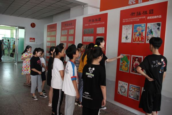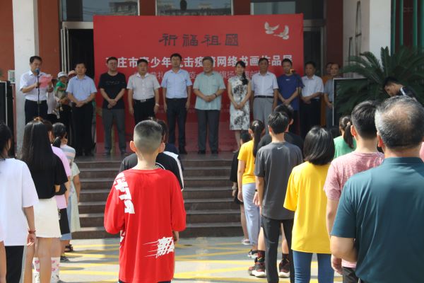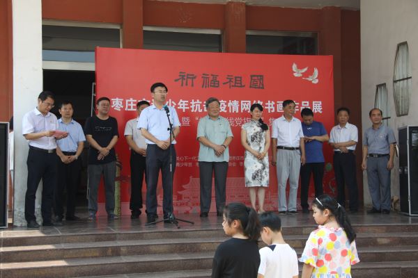 盛夏时节,硕果飘香。为大力弘扬社会主义核心价值观,迎接中国人民解放军建军93周年,发扬伟大的抗疫精神,向社会传播抗疫活动正能量,更好地鼓舞、引导广大党员干部和青少年树立爱祖国、爱人民、爱劳动、爱科学、爱社会主义的崇高革命理想信念,为实现中华民族伟大复兴的中国梦不懈奋斗凝聚力量,市青少年宫于8月1日上午在青少年宫一号楼举行“枣庄市青少年抗击疫情网络作品展颁奖仪式暨“抗疫一线党旗扬”集邮作品展览”活动。市关心下一代工作委员会副主任王亚、共青团枣庄市委四级调研员秦军、 枣庄市卫生健康委员会四级调研员王美娟、原枣庄市卫生局纪委书记邱代存等领导同志和市青年书协、市青年美协有关负责人出席了活动;部分获奖学生,家长和市青少年宫党员干部职工也参加展览活动。