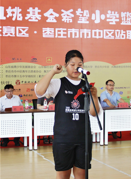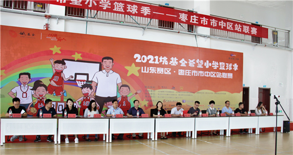 姚基金理事执行董事冯利、山东省社会创新发展与研究中心理事张健、共青团枣庄市委副书记赵波以及枣庄市青少年宫、共青团市中区委等相关单位领导及教练员、裁判员、市中区志愿者协会志愿者参加开幕式。团市委副书记赵波在开幕式上讲话强调,体育是社会发展和人类进步的重要标志,是综合国力和社会文明程度的重要体现,生命至上,健康为本。举办本次姚基金希望小学篮球季篮球比赛,必将进一步推动枣庄市青少年健身运动的深入开展,特别是促进农村学校体育运动全面、协调、可持续发展。希望全体参赛人员要发扬“更快、更高、更强”和“团结、友谊、进步”的奥林匹克精神,团结协作,顽强拼搏,全面展现蓬勃向上的新时代青少年风采,取得运动成绩与精神文明双丰收。